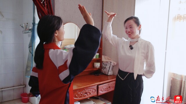 海日妮萨是寄宿生,每个周末回家,她便会给父母跳维吾尔族舞蹈。“是奶奶教的,用小小的棒子。”她边说边比划,“跳舞时,单膝弯曲,拍一下手,就是邀请他们一起来跳。”话音刚落,两位老师被热情的海日妮萨拉起来跳舞,充满动感节律的音乐响起,和许许多多的情谊一同塞满了不大的房间。