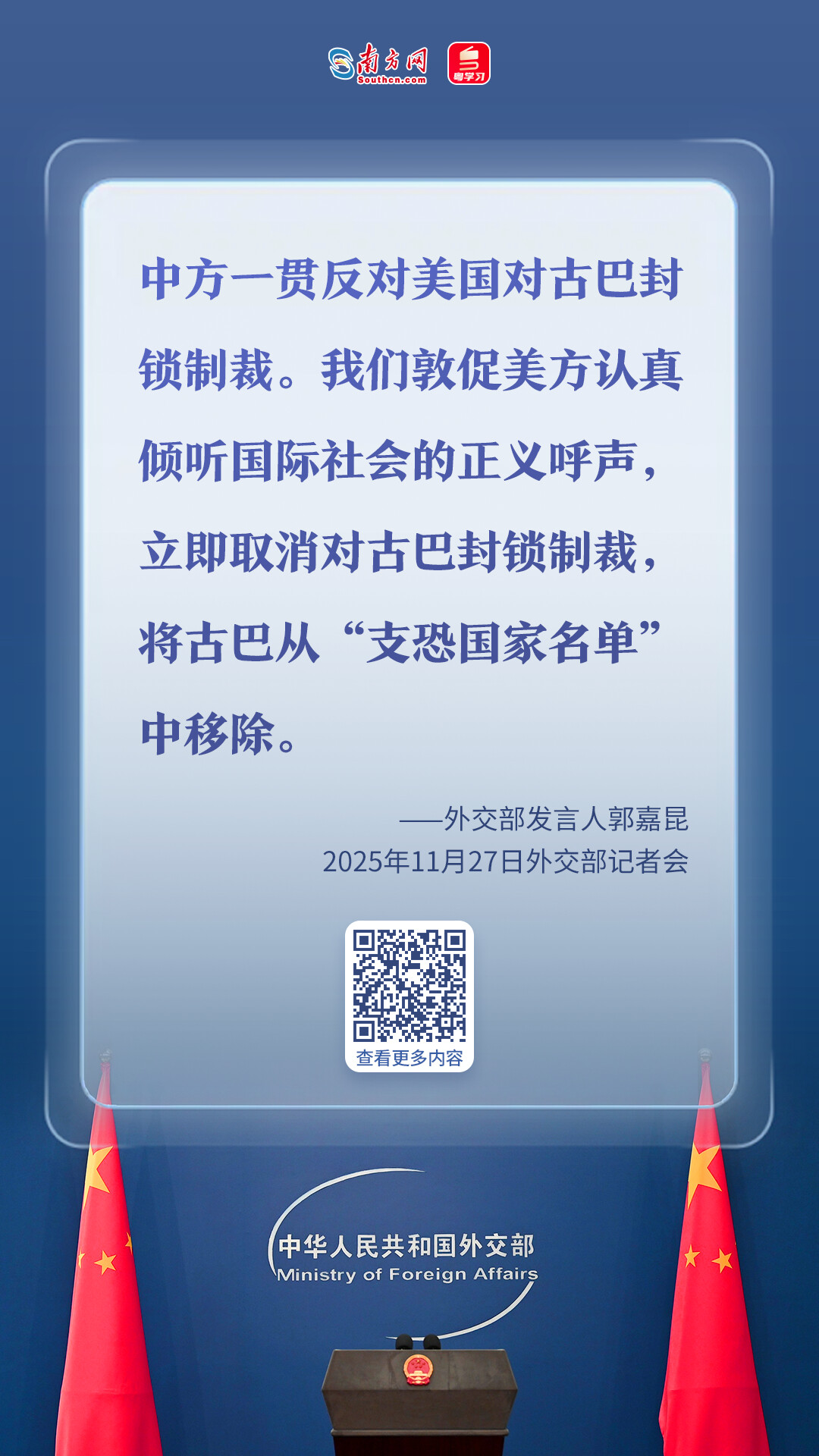 11月27日,外交部发言人郭嘉昆主持例行记者会,就中方发布新版军控白皮书、中方同南非共同提出《支持非洲现代化合作倡议》、高市早苗“不再提及”具体事例、联合国呼吁美国取消对古巴单边强制措施等问题回答记者提问(查看实录>>>)。一组图片带你速览今日外交部记者会要点。