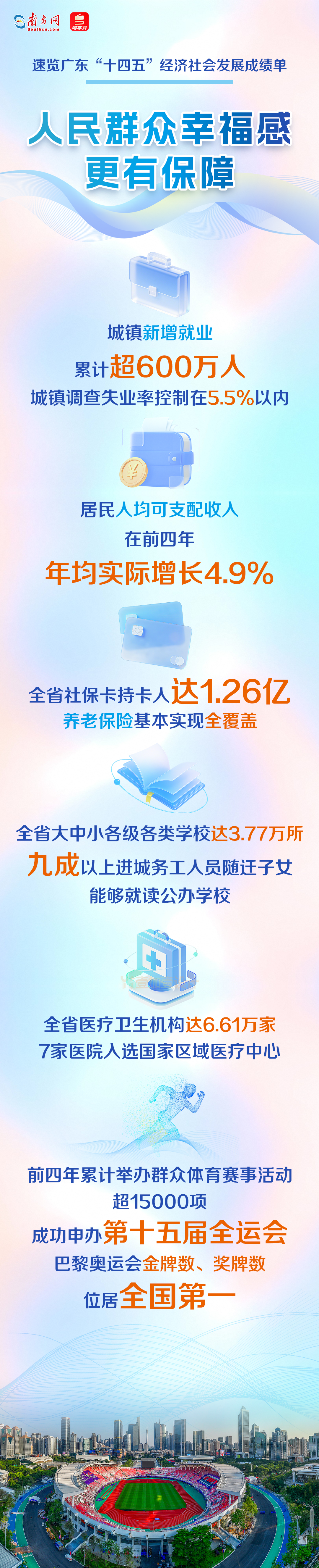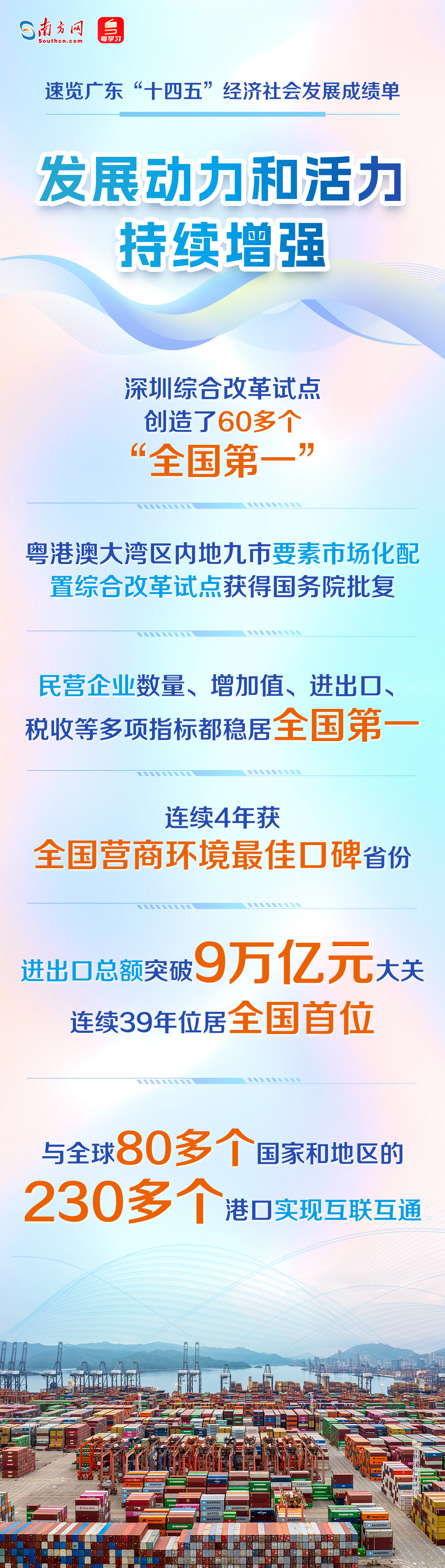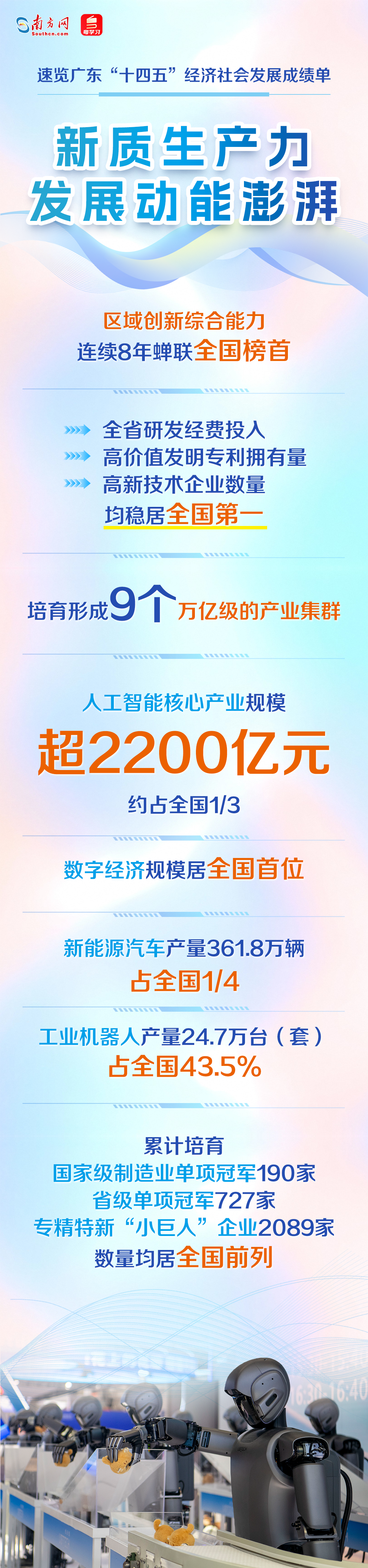 11月6日,广东省人民政府新闻办举办了第一场“‘十四五’广东成就”系列主题新闻发布会(直播回顾),介绍了“十四五”期间广东省经济社会发展总体情况。会上公布了“十四五”以来广东各领域成就,多项数据位居全国首位,成绩亮眼!8张图带你速览↓↓
