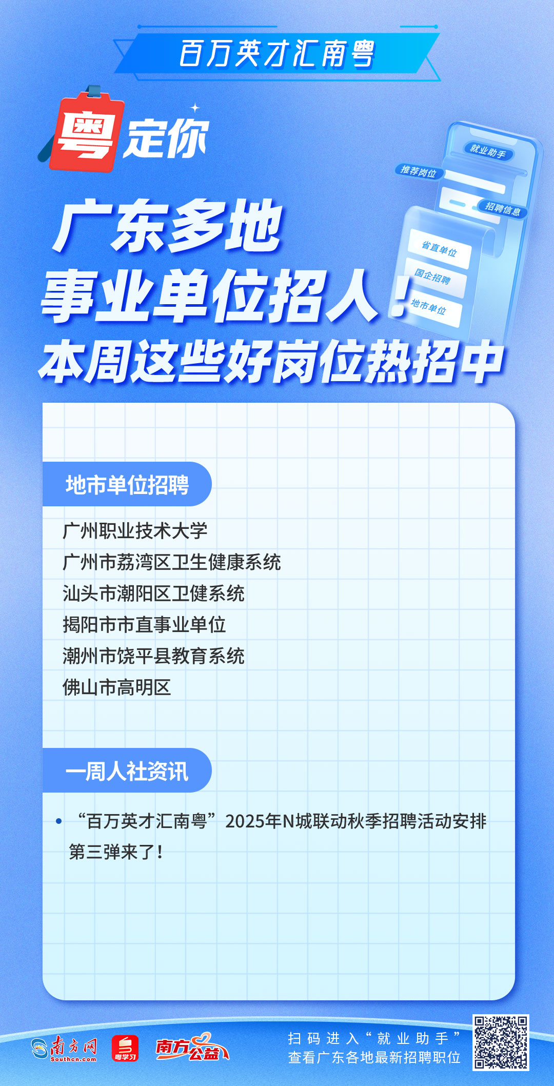 “百万英才汇南粤”2025年N城联动秋季招聘活动安排第三弹来了! 查看详情>>>
