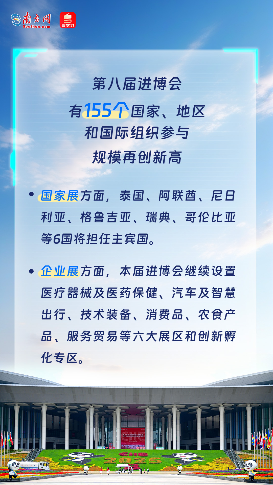 11月5日,第八届中国国际进口博览会正式开幕。本届进博会共有155个国家、地区和国际组织参与,展览面积、参展企业总数均创新高。展会期间,43个交易团、700多个交易分团将到会洽谈采购。